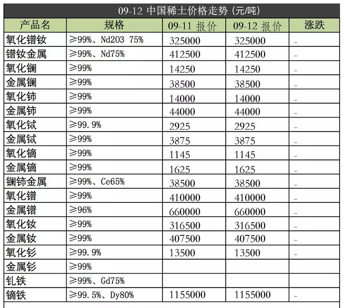 强力磁铁原材料2018年9月12日价格