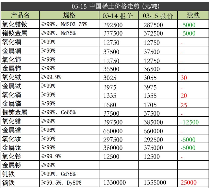 强力磁铁原材料2019年3月15日价格