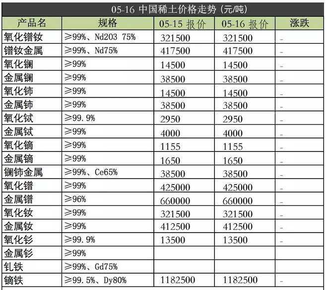 强力磁铁原材料2018年5月16日价格