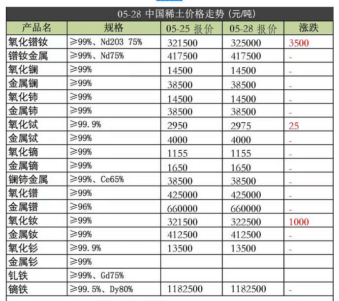 强力磁铁原材料2018年5月28日价格
