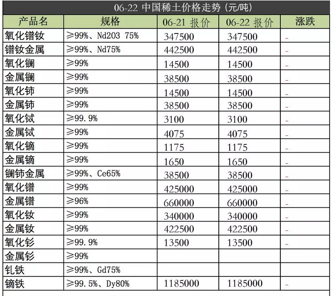 强力磁铁原材料2018年6月22日价格