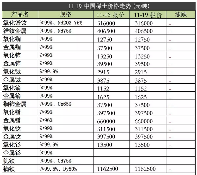 强力磁铁原材料2018年11月19日价格