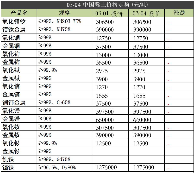 强力磁铁原材料2019年3月04日价格
