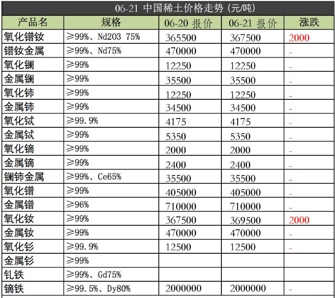 强力磁铁原材料2019年6月21日价格