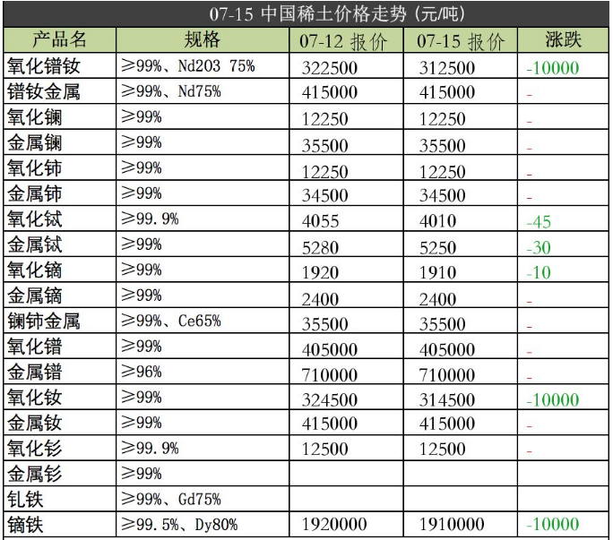 强力磁铁原材料2019年7月15日价格