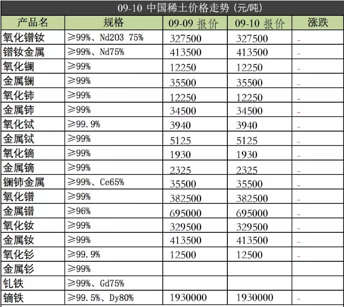 强力磁铁原材料2019年9月10日价格