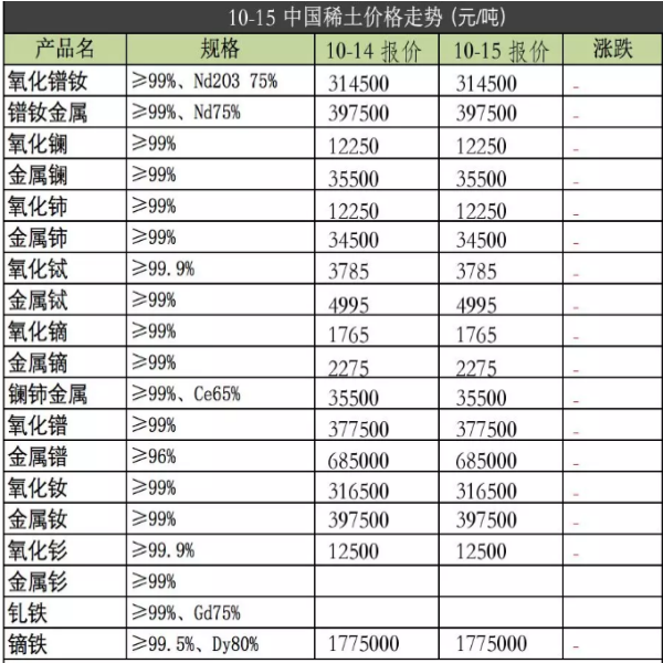 强力磁铁原材料2019年10月15日价格